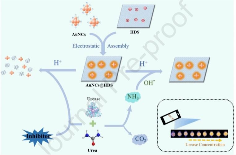 我院王冠男教授在分析化学领域中科院一区杂志STalanta(IF 6.1)期刊发表了关于基于羟基双盐基智能生物传感器用于现场检测尿素酶及其抑制剂的研究。本研究制备了一种简单灵敏的荧光传感平台,用于检测尿素酶及其抑制剂。该荧光传感平台利用了由羟基双盐(HDS)诱导的金纳米簇(AuNCs)独特的荧光增强效应和尿素酶催化水解尿素的特异性。将H+诱导的AuNCs@HDS的荧光淬灭与尿素酶催化水解尿素产生的OH- 相结合从而实现 AuNCs@HDS 的荧光响应变化,...