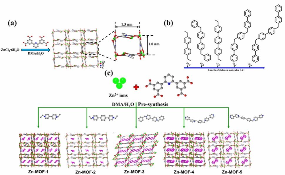 我院王冠男教授在化学领域中科院二区杂志ACS Applied Materials&Interfaces(IF 9.5)期刊发表了关于由MOF及系列紫精变体通过主客体作用的一系列 Viologen@Zn-MOF 材料及用于光致变色行为的研究。本研究以紫精为客体,三维Zn-MOF为主体,构建了五种基于紫精的主-客体材料。这些复合材料在紫外光照射下显示出客体依赖性的颜色可调发射光和紫外光照射下的光调节发光。其中,Zn-MOF-3在强度低至0.1 μw/cm2时表现出良好的光着色性。这一特性已成功地应用于紫外比色剂量计。...