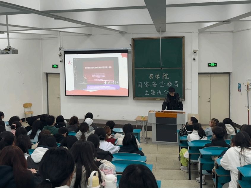 主题班会上,“国之安危重于一切”的讨论热潮在班级间掀起。师生们结合药学专业特点,深入探讨生物制剂安全、医药信息安全等议题,进一步强化了“国家安全人人有责”的思想共识。此外,学院还通过主题宣传展板、短视频推送等形式,向学生普及总体国家安全观的核心要义,推动国家安全意识融入专业学习与科研实践。