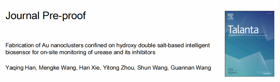 我院王冠男教授在分析化学领域中科院一区杂志STalanta(IF 6.1)期刊发表了关于基于羟基双盐基智能生物传感器用于现场检测尿素酶及其抑制剂的研究。