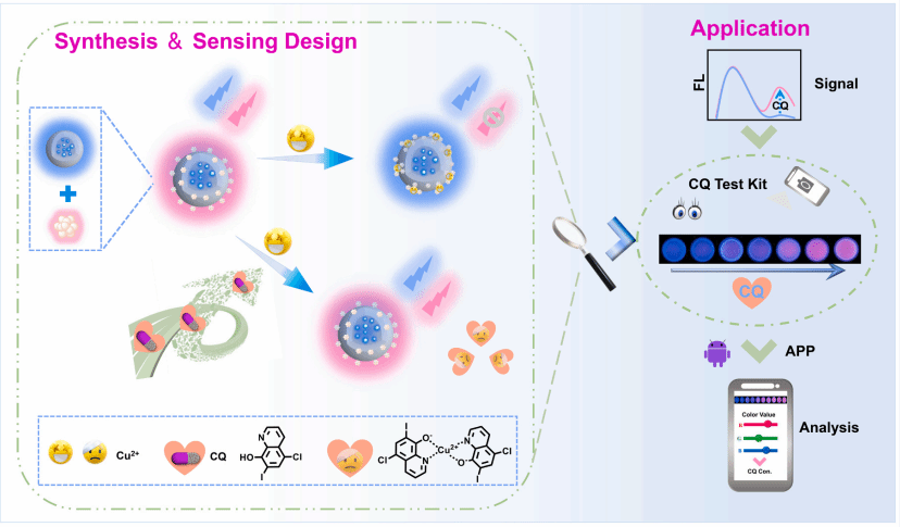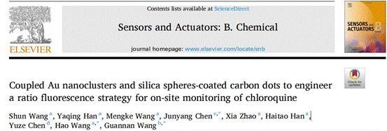 近日,我院王冠男教授在传感器领域中科院一区杂志SSensors and Actuators: B. Chemical(IF 8.4)期刊发表了关于一种耦合金纳米簇和二氧化硅球包覆的碳点,通过比率荧光策略,用于检测氯喹的研究。